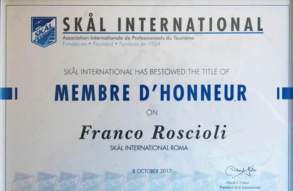 Franco has great importance not only for Roman Tourism but also for Tourism in Italy. He has dedicated so much of his time and energy to maintain Skål International Roma in the foreground.