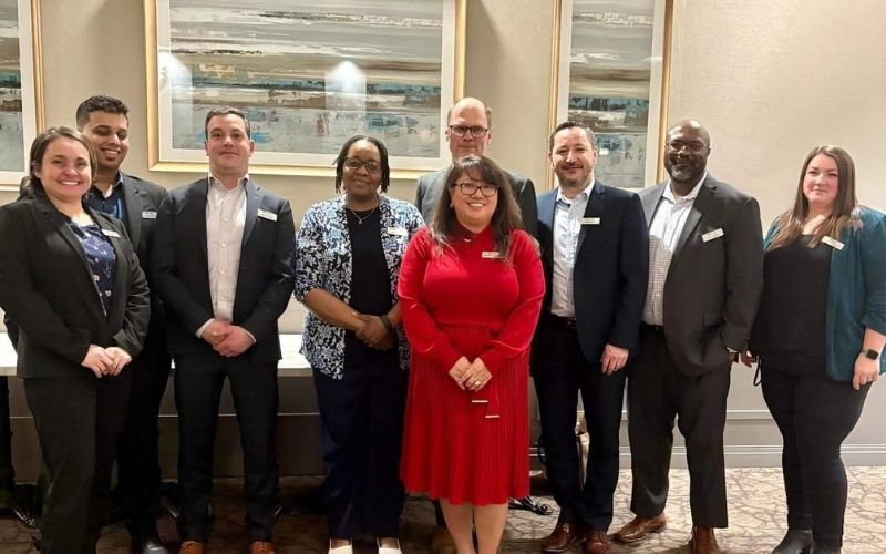 Ivey Spencer Leadership Team. From left to right: Dani Cerullo, Front Office Manager, Deon Patel, F&B Manager, Jeff Enwright, Executive Chef, Phillipa Lubin, Director of Finance, Jennifer Chiappetta, Director of Commercial Strategy, Darius Pocius, Banquet Manager, David Escaf, Director of F&B Operations, Sean Palmer, General Manager, Brittany Fortney, Director, Rooms.