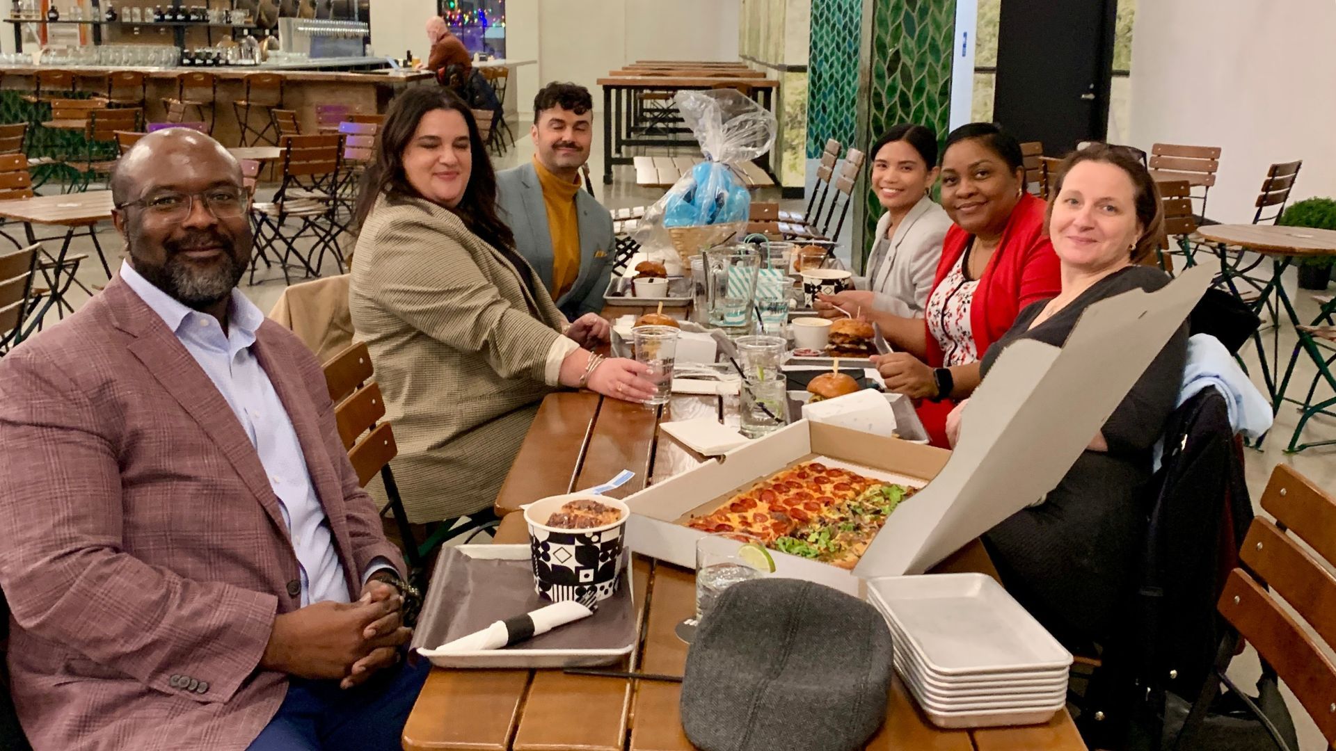 From left to right: Nadia McCormack-McIntyre (member/Board), Emanuela Frongia (member/Board), Georgia Raso (member/Past President), Luca Monti (2024 President), Amy Shackleton (guest), Weireen Velasquez (member), Sean Palmer (member).