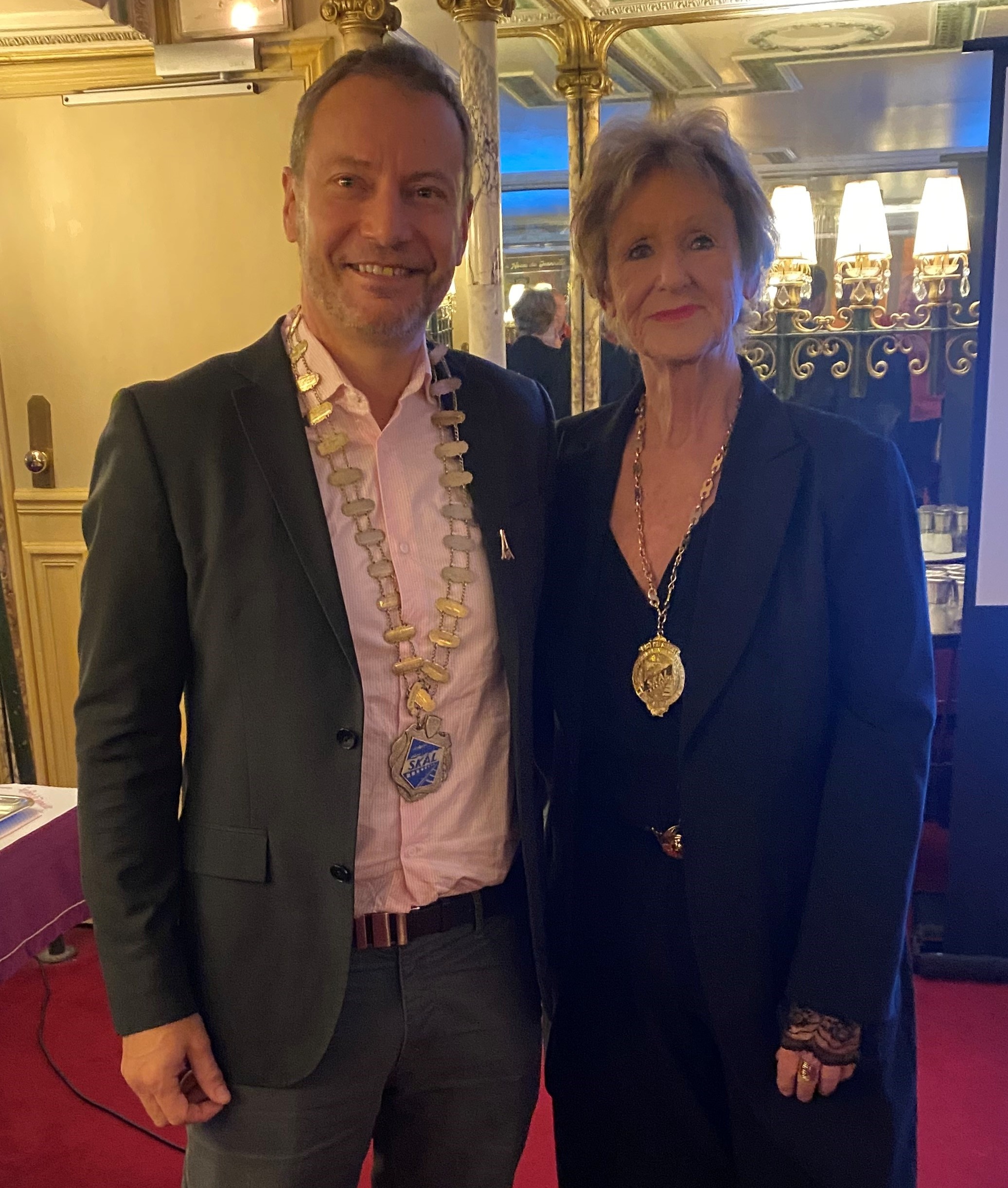 Newly elected President of Skål International Paris, Laurent Queige, and outgoing President Karine Coulanges.