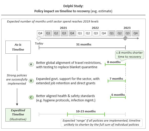 While all participants of the Delphi study agree that there will be no easy route to recovery, industry leaders voiced their expectation that policy areas discussed in this manifesto have the potential to significantly shorten the timeline to recovery: