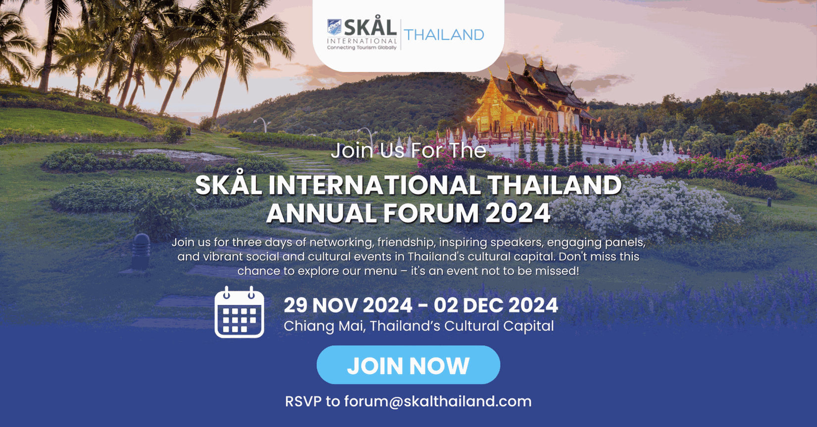 El Foro Anual de Skål International Tailandia 2024 se celebrará en Chiang Mai del 29 de noviembre al 2 de diciembre.