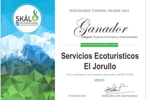 En México enviamos 8 proyectos, siendo el país con mayor participación y el honor de haber Ganado el proyecto enviado por Skål International Puerto Vallarta- Riviera Nayarit con el proyecto Servicios Ecoturísticos El Jorullo - Canopy River en la categoría de Proyectos comunitarios y gubernamentales
