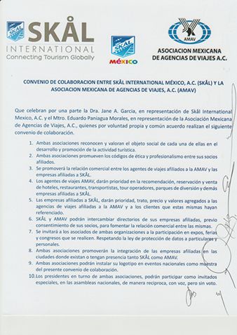 Particularmente con aliados en el Turismo, como lo es la firma de convenio entre Skål International México y la Asociación de Agencias de Viajes (AMAV) para traer consigo beneficios en común.