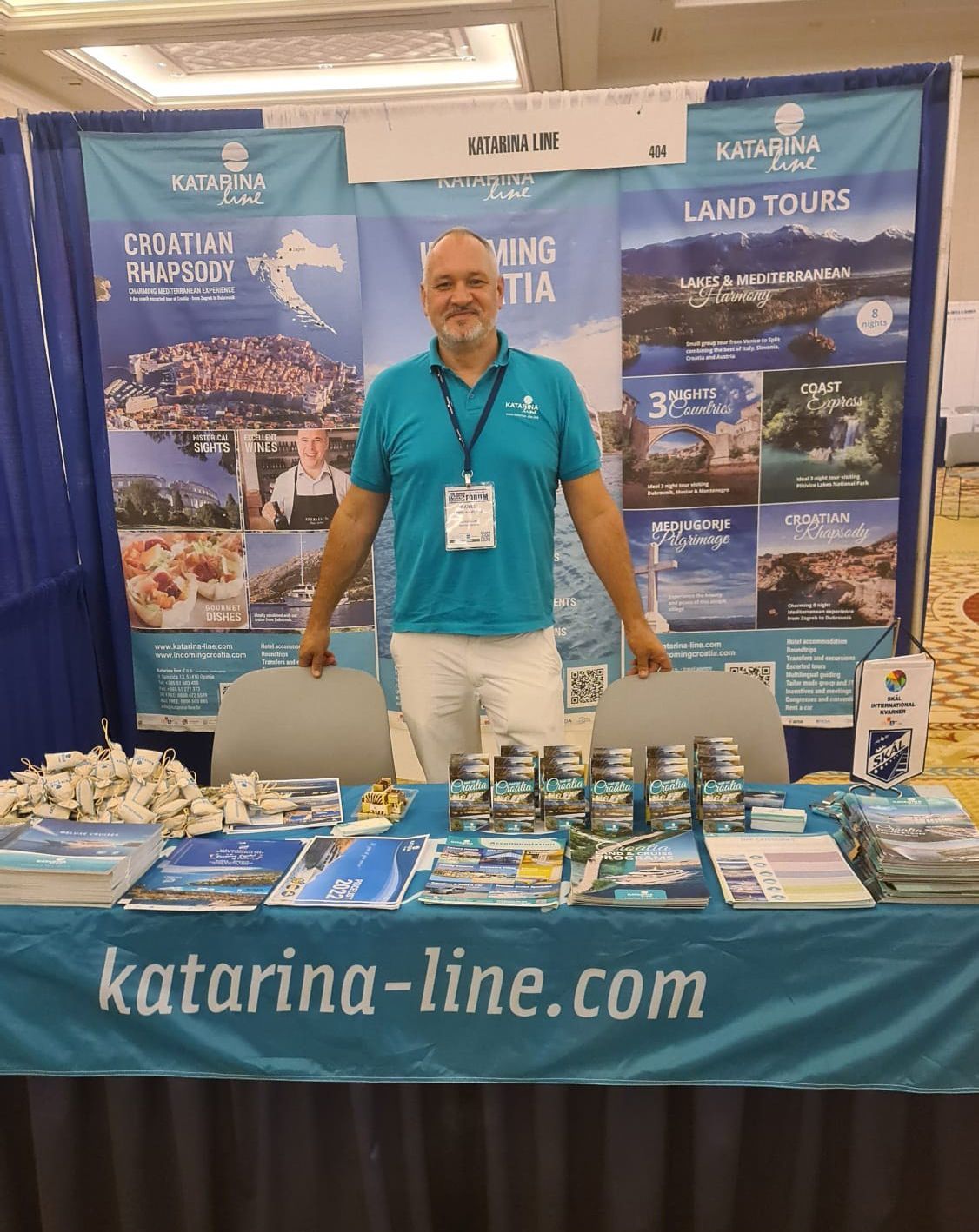 Además, Daniel Hauptfeld, Director de Marketing de Katarina Cruises Line, siempre viaja con la bandera de Skål International, lo que atrae a mucha gente a visitar su stand.